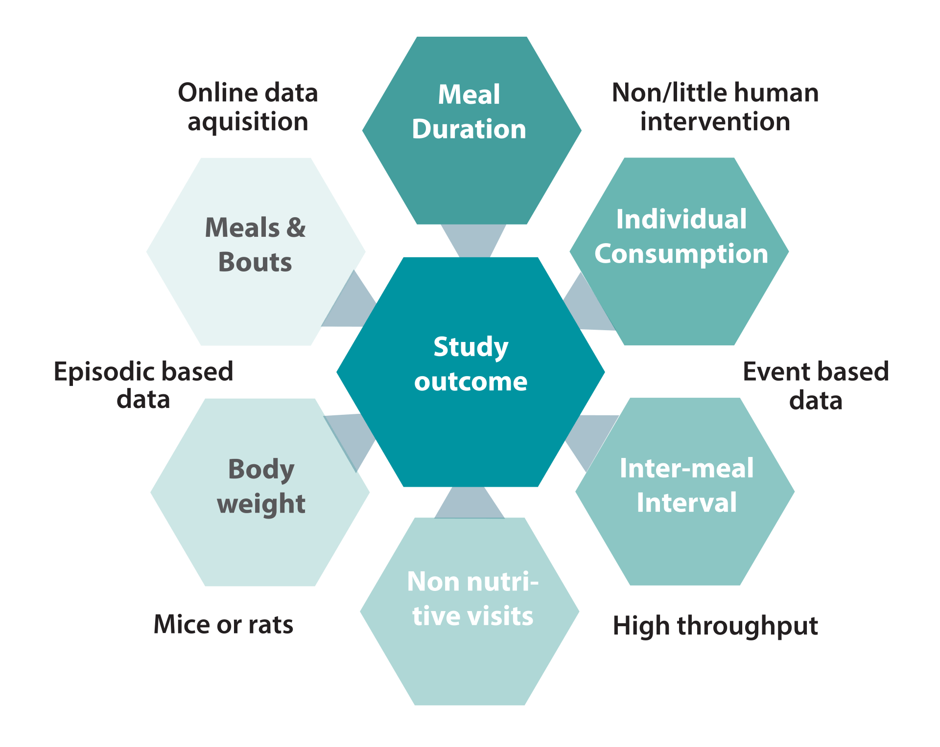 Systems for food and water intake for socially housed mice or rats