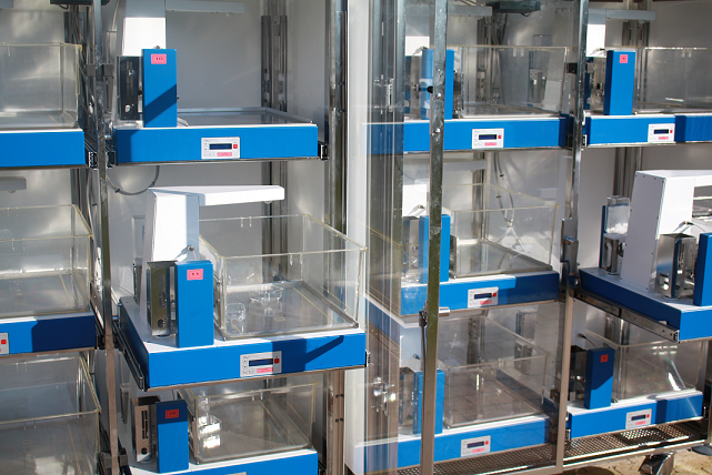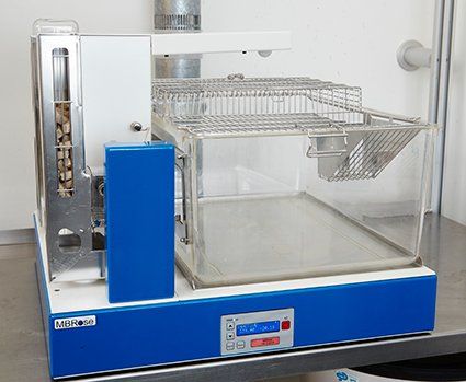 Finally a bit about the cages that can be fitted to the HM-2 station. Most standard cages can be used and these will be modified with with channel entrances for the selected species. The most common is the Tecniplast 1500U eurostandard type IV S (480x375x210 mm.) 1500 cm2 or 232,5 in2. This can be used for both rats and mice, but is the modified for each species. The largest cage we have used is the Tecniplast 1354G with floorspace of 1820 cm2 or 282,1 in2.