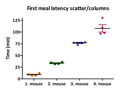 The system record events with a time stamp in millisecond, the start time of each meal, the amount of food consumed, the duration of the meal, and the finishing time. Activity is monitored on the cage-level and gives you a circadian rhythm of the social group. Setup configurations allow the researcher to establish the parameters for the experiment, study and session in advance.